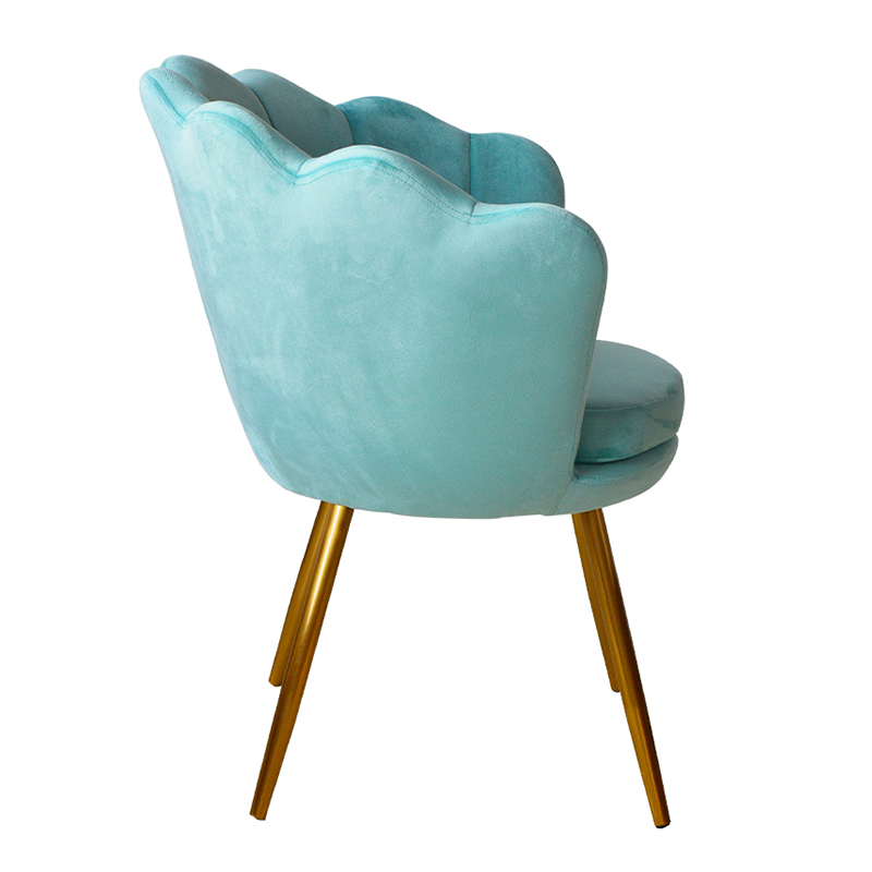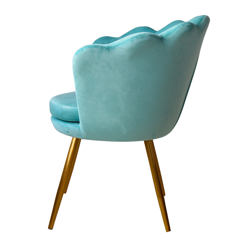 この椅子は、強度と耐久性を提供する頑丈な金属フレームを備えており、柔らかいベルベット生地が快適で居心地の良い座り心地を提供します。また、椅子は人間工学に基づいた曲線で設計されており、背中をサポートし、疲労や不快感を軽減します。